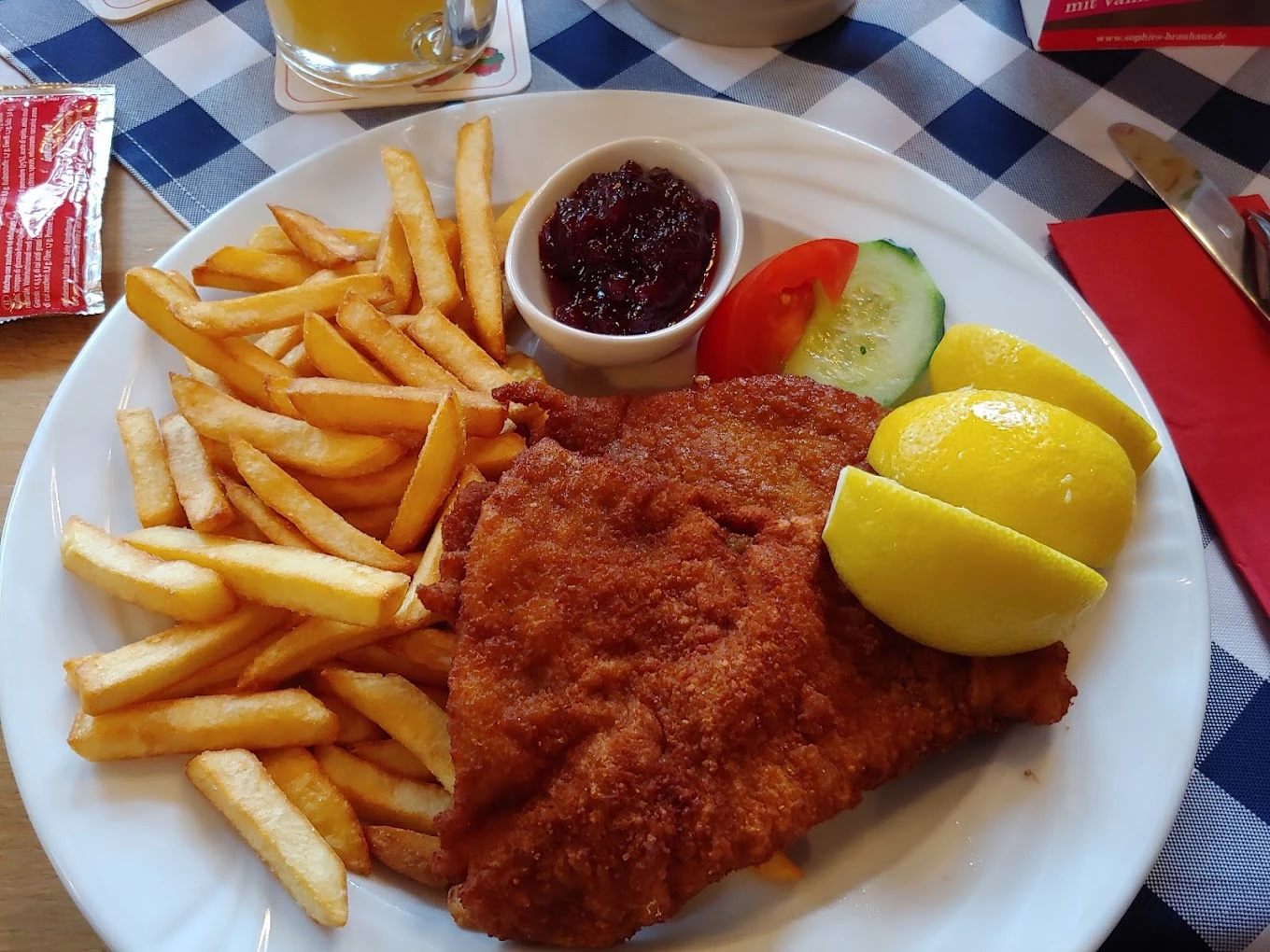 Das Butter Schnitzel, das man serviert bekommt, bereitet leider keine Freude. Es wirkt wie ein liebloses Industrieprodukt, das weit von echter Handwerkskunst entfernt ist.
