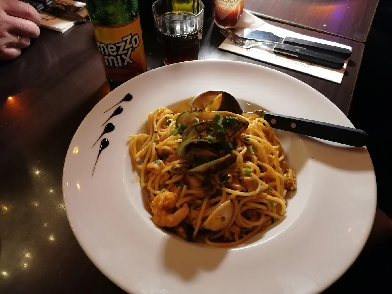 Abgerundet wurde unser Besuch durch das vorzügliche italienische Essen zu günstigen Preisen. Für zwei Personen zahlten wir 35 Euro für Pastagerichte, ein Dessert, Kaffee und Getränke. Die gemütliche Atmosphäre und die Geduld des Personals mit unseren bescheidenen Deutschkenntnissen machten diesen Abend zu einem unvergesslichen Erlebnis.