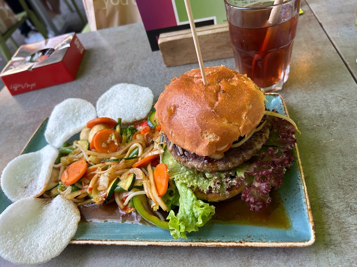 Das Essen war durchaus schmackhaft, jedoch fehlte es an der besonderen Note, die man sich in der vielfältigen Thai-Küche wünscht. In Köln gibt es viele Optionen, doch hier bleibt es eher im soliden Bereich. Die Speisen sind genießbar und lecker, wenn auch etwas zurückhaltend gewürzt. Ein kleines Manko ist das Fehlen von Desserts, die das Erlebnis perfekt abrunden könnten.
