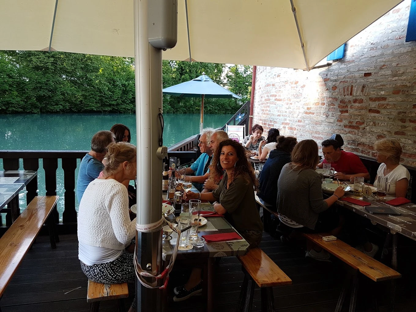 Lassen Sie sich von der malerischen Kulisse dieses Restaurants verzaubern, das sich an einem idyllischen Seeufer schmiegt. Genießen Sie den Anblick anmutiger Enten, die auf dem Wasser gleiten, während Sie sich in einem gemütlichen Boot entspannen und ein erfrischendes Bier schlürfen. Die zeitreiseartige Atmosphäre lädt Sie ein, vom Alltag abzuschalten und in die Gastfreundschaft einzutauchen.